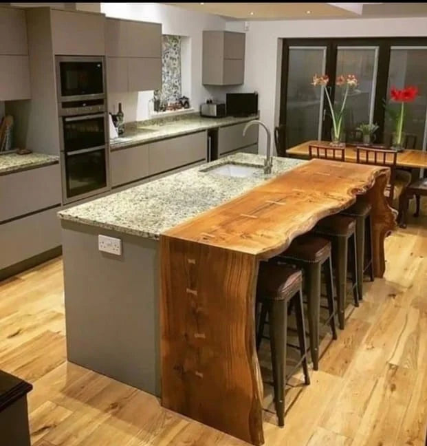 Nuestra barra de ciprés de canto vivo con base de madera es una pieza funcional y decorativa, ideal para cocinas, balcones o galerías cerradas. Fabricada con ciprés macizo, conserva los bordes irregulares y vetas naturales que le otorgan una estética única y orgánica.