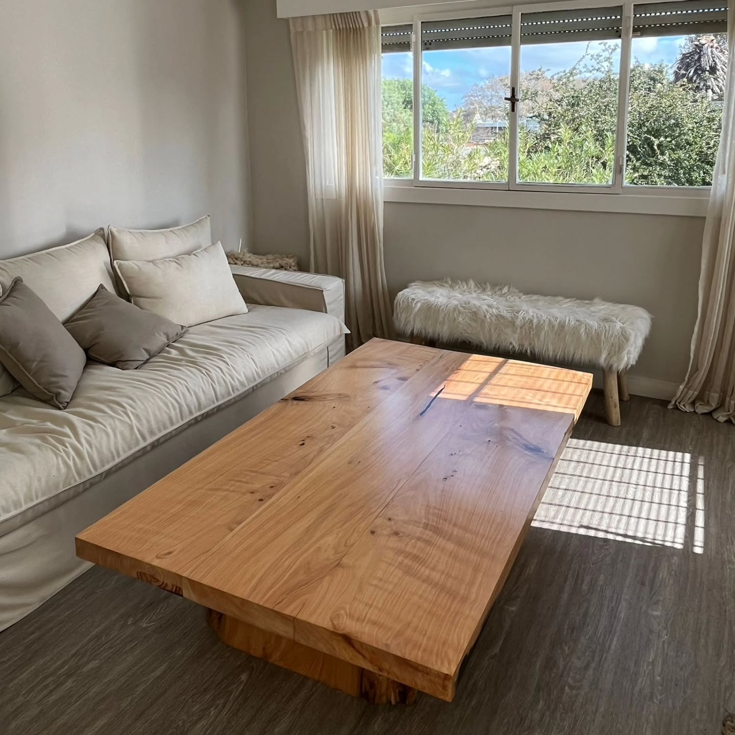 El ciprés tiene vetas marcadas y tonos que van del dorado al caramelo claro, lo que lo hace ideal para mesas de comedor, ratonas y barras donde buscás destacar la naturalidad sin perder elegancia. Además, es liviano pero resistente, perfecto para piezas grandes de diseño artesanal. -
